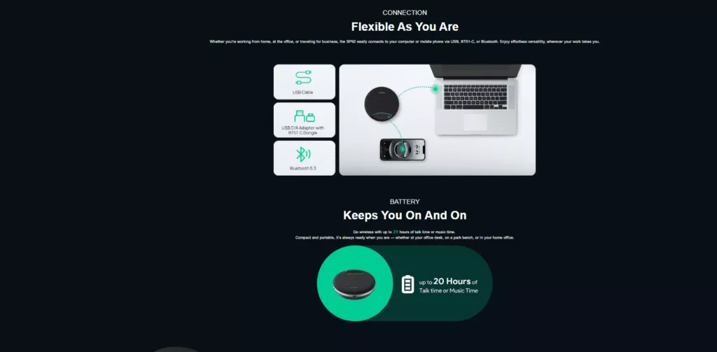 חיבור מרובות, עיצוב "חבר והפעל", זמן דיבור ומוזיקה ארוכים, קומפקטי, נייד ותואם לפלטפורמות UC